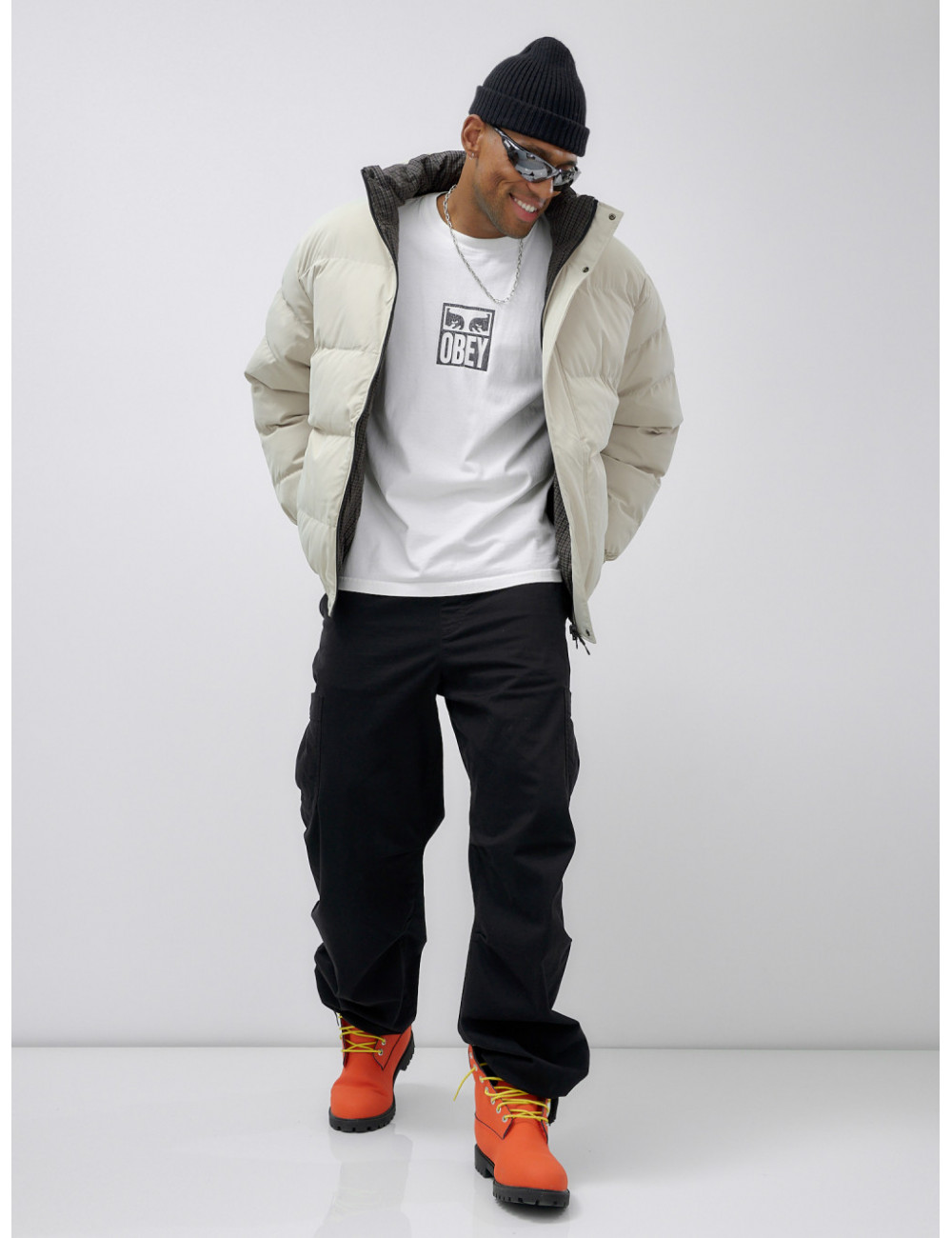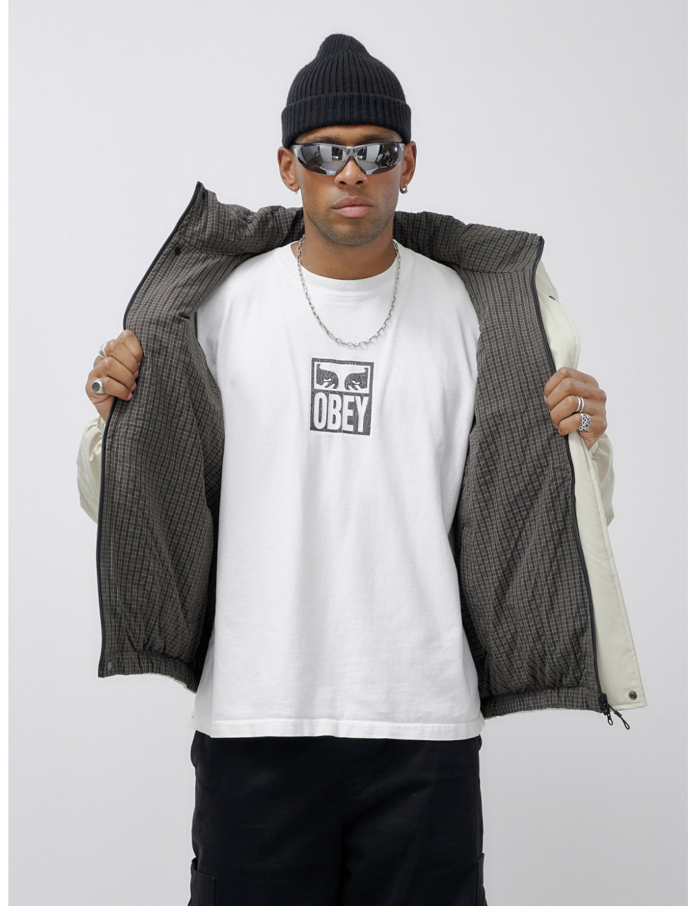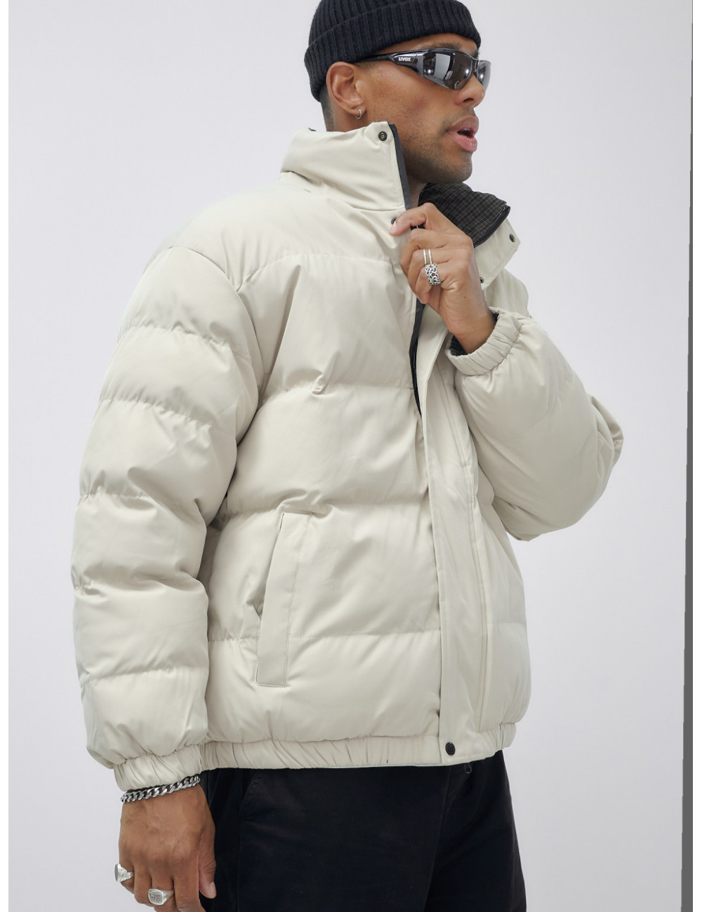 Куртка имеет две стороны: одна простегана, фактура напоминает зефир, но ткань плотная мембранная, которая надёжно защищает от холода и влаги. Вторая сторона отличается уникальной текстурой с мелким клетчатым рисунком, добавляя изюминку вашему стилю.