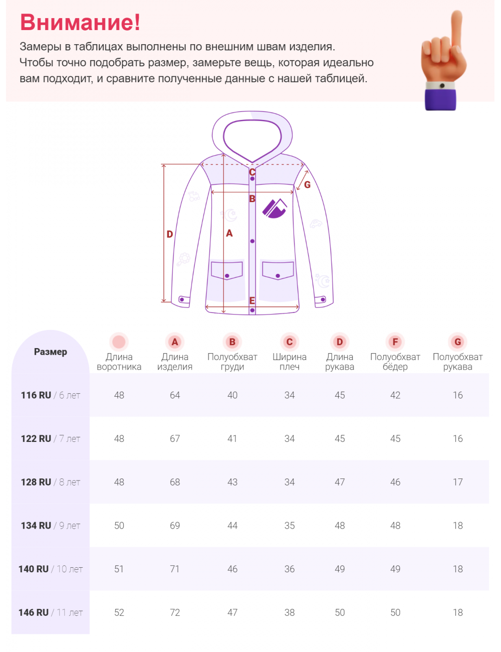 | Подростковый S (146) | 140 - 146 | 10 - 11 лет |