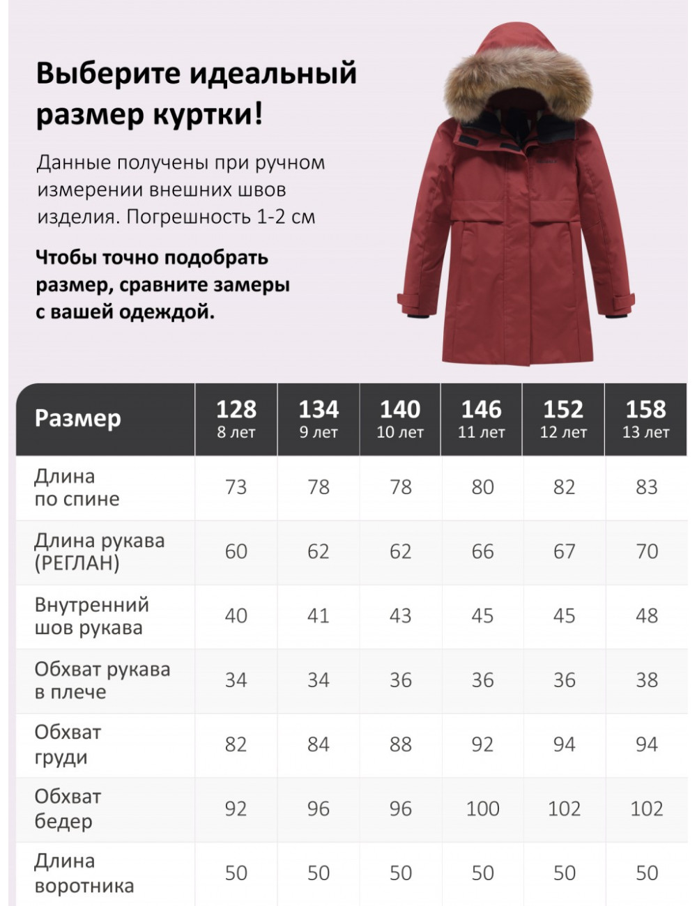 | Подростковый L (158) | 152 - 158 | 13 - 14 лет |