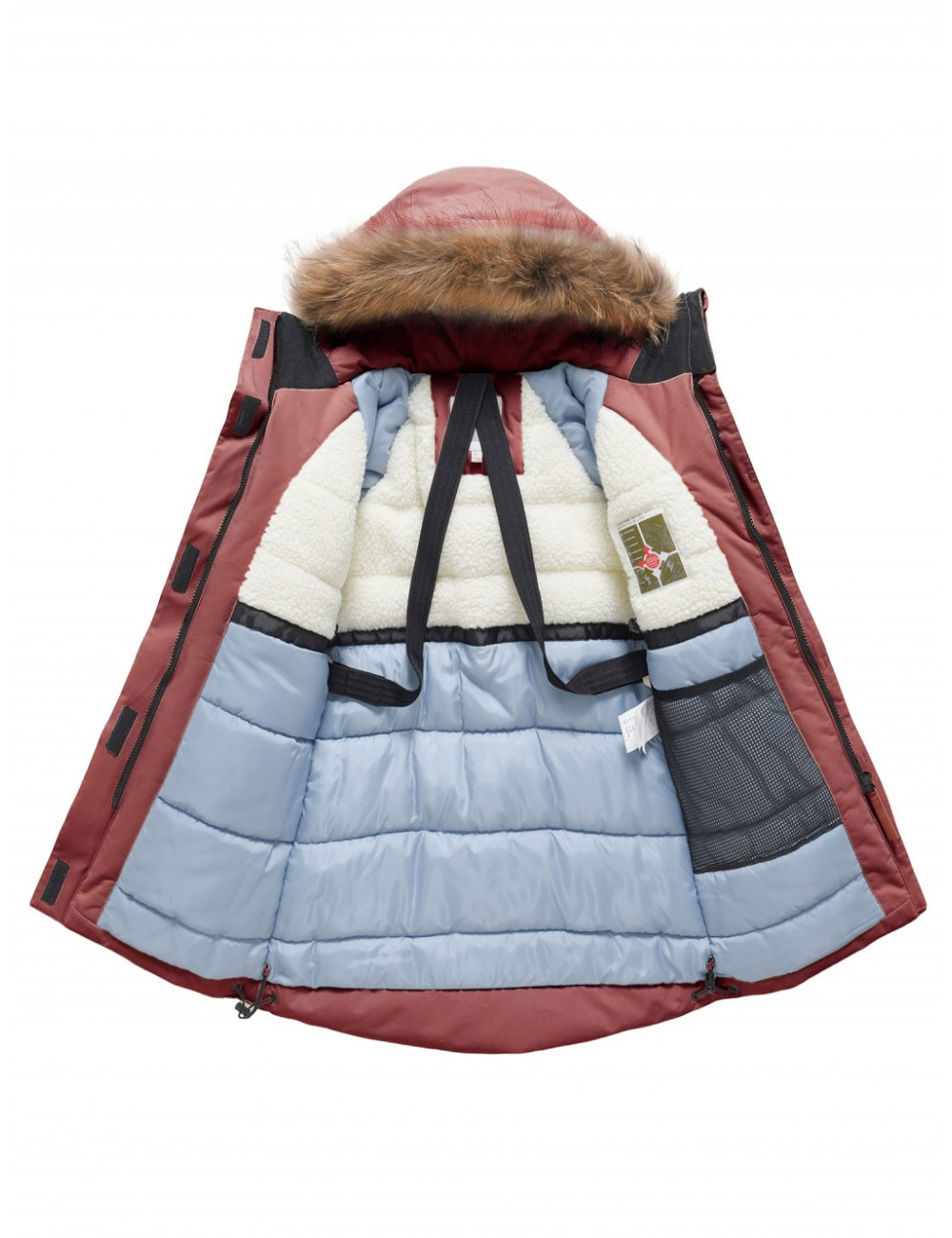 - Капюшон с меховой отделкой. Обеспечивает дополнительную защиту от холода и ветра.