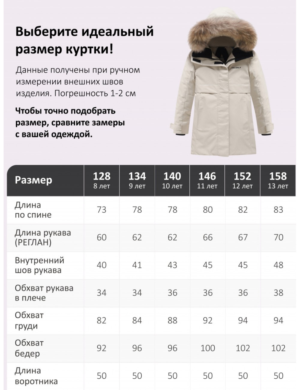 | Подростковый L (158) | 152 - 158 | 13 - 14 лет |