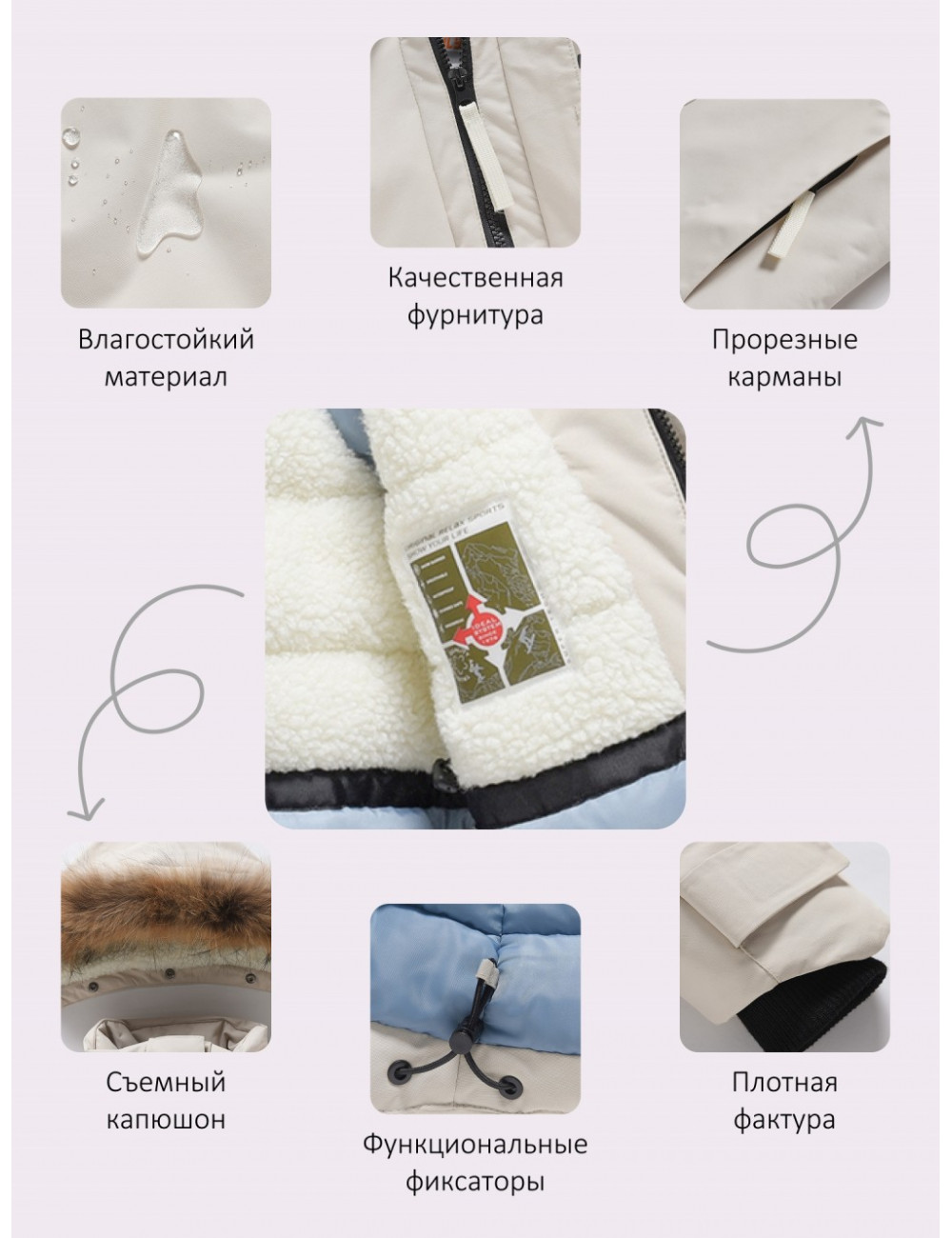 | Декоративные элементы | Манжеты, Мех, Карманы, Съемная опушка |