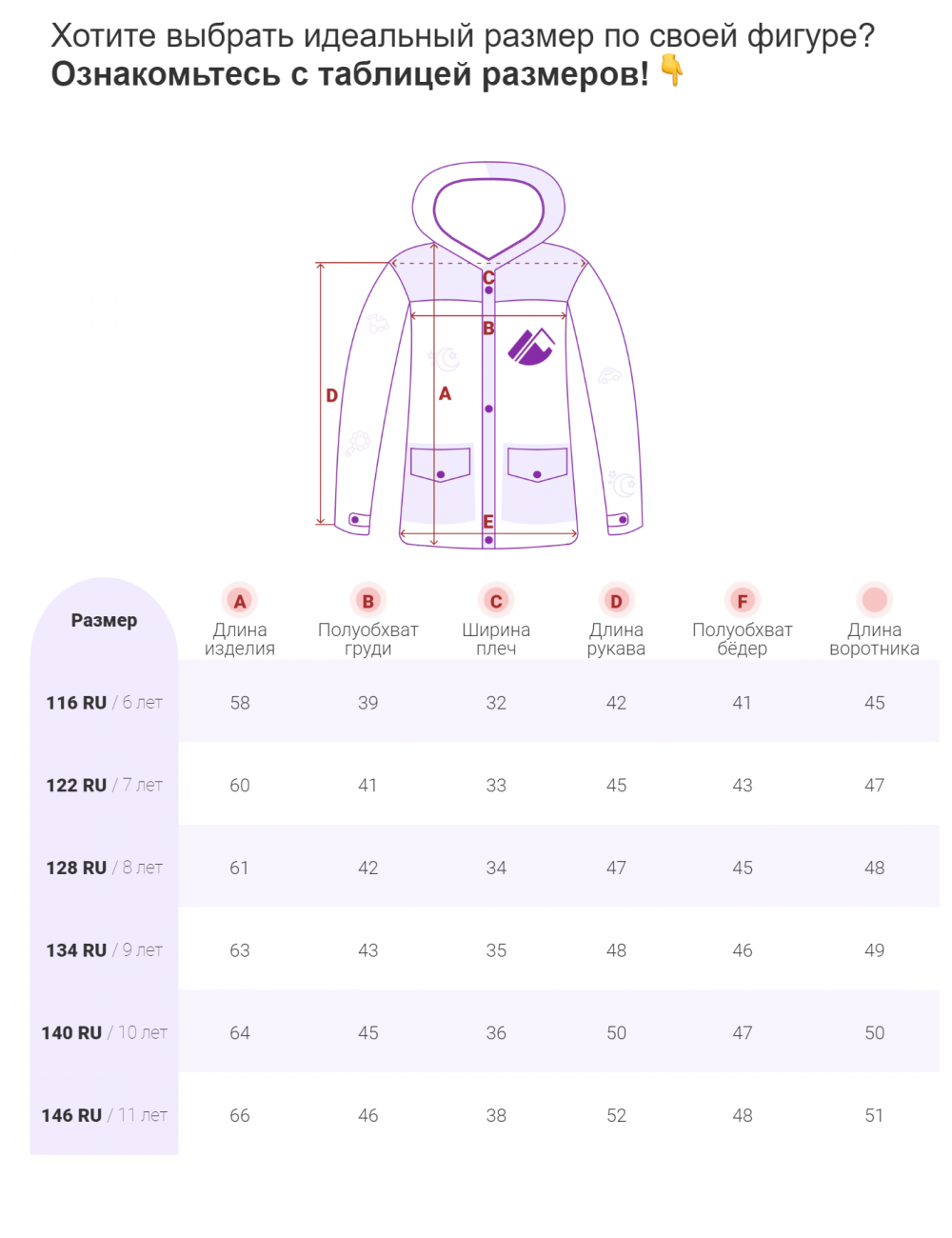 | Подростковый S (146) | 140 - 146 | 10 - 11 лет |
