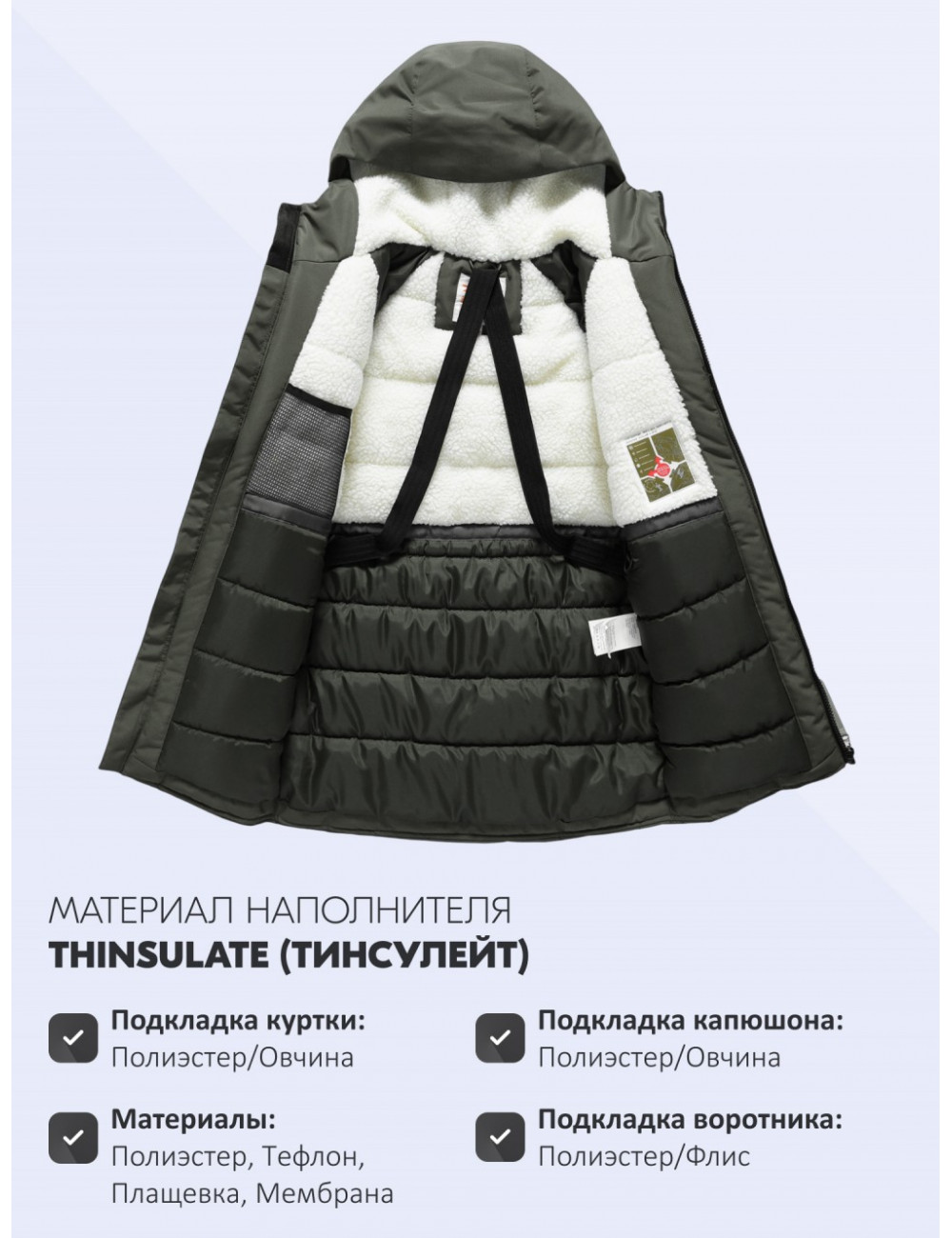 | Материал подкладки куртки | Полиэстер/Овчина |