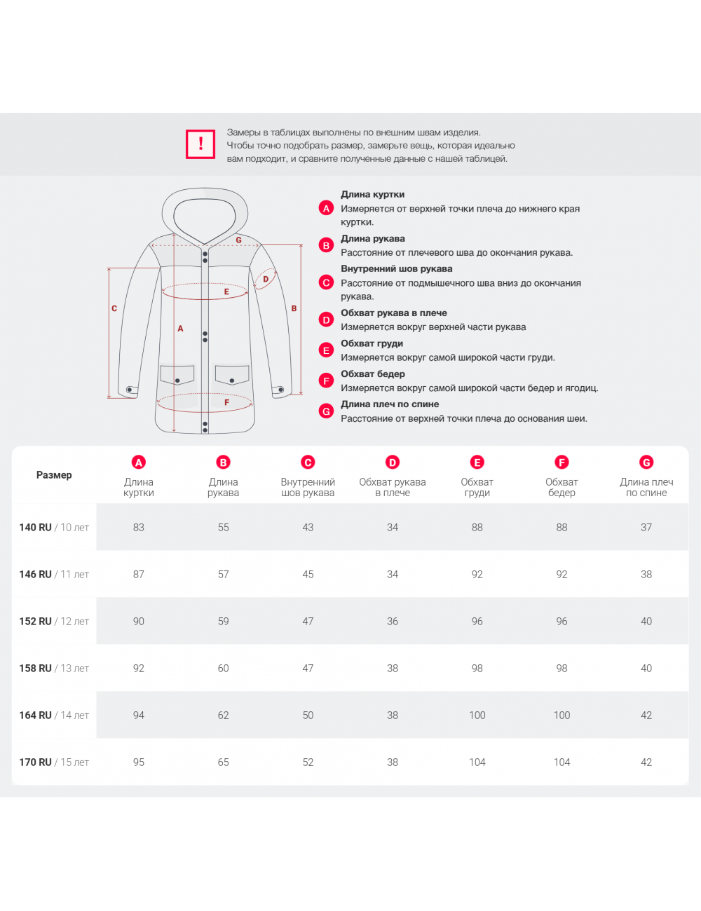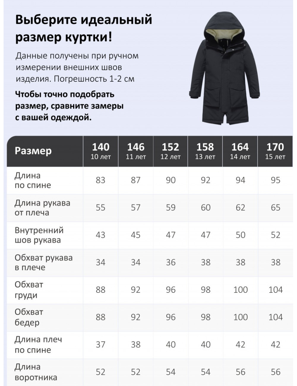 | Подростковый XXL (170) | 164 - 170 | 15 - 16 лет |