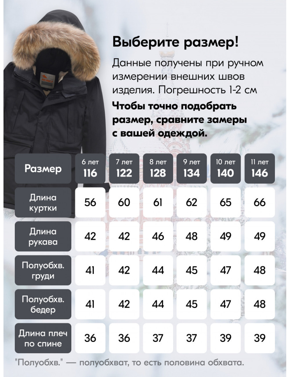 | Декоративные элементы | Мех, Капюшон, Светоотражающие элементы, Съемная опушка |